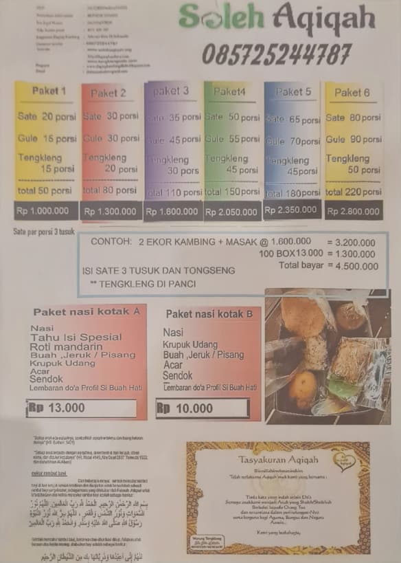 Untuk informasi dan pemesanan aqiqah, silakan hubungi: